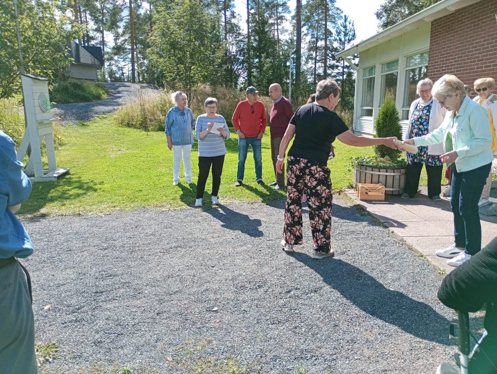 Sää suosi jälleen vierailuamme Kankaanpään Parkkiskerhon vieraana Hakoniemen leirikeskuksessa Vapaamuotoisen seurustelun ja maittavan lounaan jälkeen siirryimme ulos kisailemaan Mölkky-peliä, jonka voittajat saivat makeat palkinnot.